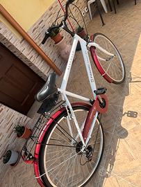 Vendo splendida bicicletta Firriato “Suitable Wine” – edizione limitata da collezione, praticamente nuova, usata una sola volta! Questa bici dallo stile elegante e raffinato è stata realizzata in collaborazione con Firriato, celebre casa vinicola siciliana, e unisce design italiano, comfort e unicità. -Telaio in acciaio bianco con inserti bordeaux, linea elegante e originale -Cambio posteriore a più velocità, fluido e preciso, con 6 marce -Parafanghi colorati in tinta, dettagli esclusivi -Portapacchi posteriore per massima versatilità -Protezione catena firmata Firriato -Comodissima sella ergonomica -Pneumatici praticamente nuovi Una bici perfetta per la città, le passeggiate in campagna o da esporre come pezzo da collezione. Introvabile in queste condizioni!