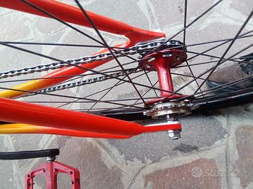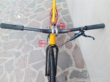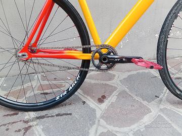 Bici assemblata e pari al nuovo Usata pochissimo Telaio e forcella alluminio di provenienza ridewill Misure (vedi ultima foto) 56,5 centimetri orizzontale 56 centimetri verticale Corrisponde ad una L Mozzo flil flop, utilizzabile a scatto fisso oppure normalmente a ruota libera Guarnitura Shimano XT Monocorona 34 denti Ruote 28" ZTR arch Reggisella e manubrio in carbonio Freno avid db3 con disco 180 Bici leggerissima e reattiva Vendo per inutilizzo e bisogno di spazio Posso trattare il prezzo solo di fronte a persone serie, interessate e che non fanno perdere tempo Come difetti solo qualche segno sulla vernice Pronta all' uso Ritiro a mano su Bologna Posso anche spedire(contattami in messaggio)