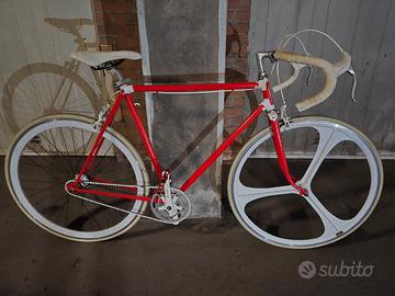 Vendo bicicletta scatto fisso fixed/ ruota libera con manubrio da corsa e pedali in alluminio anodizzato. Come in foto presente un cerchio il lega di alluminio bianco.