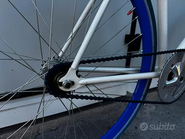 Bicicletta Fixie artigianale perfettamente funzionante. Carrello fisso sul mozzo posteriore, freno anteriore ausiliario. 390€