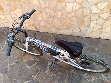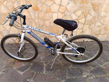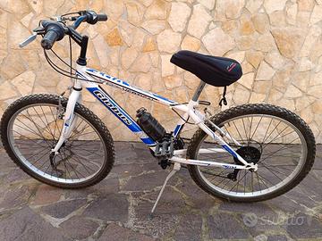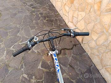 Vendo bicicletta in buone condizioni, ideale per ragazzi o adulti che cercano un mezzo pratico per uso quotidiano o passeggiate. La bici ha il telaio robusto e leggero, ruote da mountain bike con pneumatici tassellati adatti anche a strade sterrate, cambio e freni funzionanti, cavalletto laterale, portaborraccia con borraccia inclusa, sella comoda. La bici è pronta all’uso, presenta solo normali segni di utilizzo ma è perfettamente funzionante. Ottima per città, campagna o tempo libero.