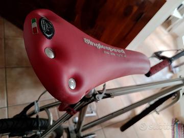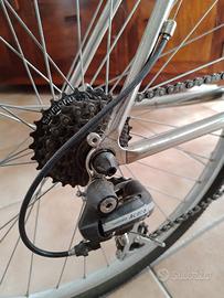 Bellissima e leggerissima bicicletta ibrida modello Ganna Action Street. Telaio in acciaio, cerchi doppia camera con mozzi bloccaggio in alluminio, cambio Shimano Altus 7v colore argento con rifiniture rosse. Particolarmente adatta per persone di piccola corporatura o altezza 1.65cm circa