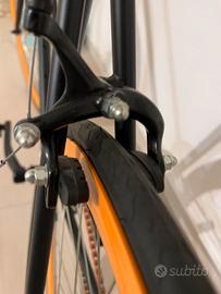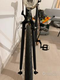 Vendo splendida bicicletta Gloria ( mai usata ) a scatto fisso / single speed, perfetta per chi cerca un mezzo agile, leggero e con un design che non passa inosservato tra le vie della città. La bici combina un’estetica elegante e aggressiva grazie al telaio nero opaco e ai vivaci cerchi arancioni a profilo alto, che garantiscono stabilità e un look moderno. Caratteristiche principali: Telaio: Acciaio leggero e resistente, brandizzato Gloria. Ruote: Cerchi "Deep-V" arancioni con mozzo flip-flop (possibilità di usarla sia come scatto fisso che come classica ruota libera). Accessori inclusi: Faro anteriore vintage cromato, sella comfort marrone coordinata alle manopole, freni caliper anteriori e posteriori già montati. Stato: Ottime condizioni, pronta all'uso. Ideale per il commuting urbano o per chi vuole una bici semplice da mantenere e divertente da guidare. Prezzo: [250€] € Ritiro: [Foligno (pg)] Contattami per ulteriori foto o per venire a provarla