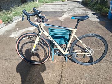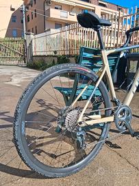 gravel in alluminio, taglia 57, 34/50×12/34, shimano, freni a disco meccanici, pastiglie sostituite 400 km fa assieme a copertone posteriore. Monta cannotto allungato e girevole davanti e sellino memory, disponibile con cannotto e sellino originali. Pedalini double face con e senza attacco. km percorsi circa 2000. Vendo per scarso utilizzo.