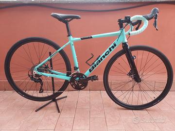 Bicicletta gravel donna Bianchi Via Nirone 7 Allroad Disc. - Taglia 50 - Telaio in alluminio. - Forcella in carbonio. - Freni a disco. - Cambio Shimano GRX 400 - Guarnitura 46/30T - Pacco pignoni: 11, 13, 15, 17, 19, 21, 23, 26, 30, 34T - Computer echowell u10w