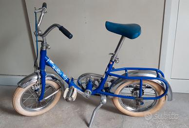 Vendo bicicletta Graziella Carnielli per bambini pieghevole anni '60, dotata anche di rotelle, ruota da 10, condizioni buone come da foto, misura lunga da ruota davanti a quella posteriore 90 cm, altezza da terra sedile 56 cm, abbassabile, come il manubrio, altezza 59 cm. Peso 8 kg, spese di spedizione 20 euro. Prezzo 110 euro. Spedizioni in tutta Italia e in tutto il mondo ! ! ! Contatto solo via telefono o Whatsapp al numero 349-0869294.