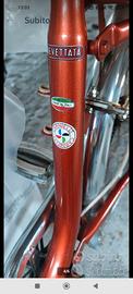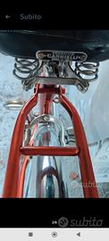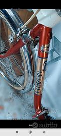 bicicletta Graziella Carnielli con sella campanello freni e gomme originali color ruggine metallizzato e cromature non rigata usata poco anni 70 pieghevole con chiave x sblocco adatta X trasportare in spazi ridotti tiene poco spazio ruota 22" modello 550 A