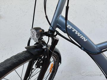 Splendida bicicletta ibrida marca BTWIN modello Original 520 taglia L, mantenuta sempre con cura. Bellissimo colore Grigio con parafanghi neri. Accessorio campanello in metallo e cestino posteriore in metallo a sgancio rapido, comodissimo per alloggiare spesa e oggetti usandolo come un cestino portatile.