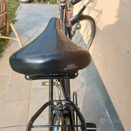bicicletta vintage x uomo, marca imperial, freni a bacchetta, perfettamente funzionante,colore nero con bordo color oro, sella "San marco" come nuova., ha qualche segno del tempo sulla vernice , i pneumatici tengono bene. unica cosa da fare occorre collegare il filo al fanale. acquistata negli anni 70