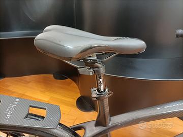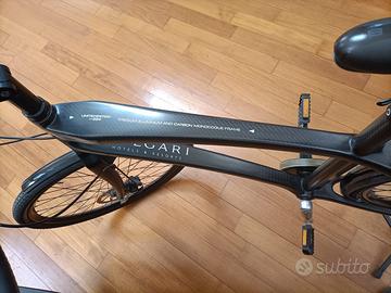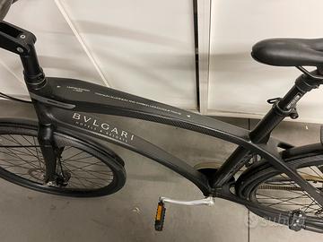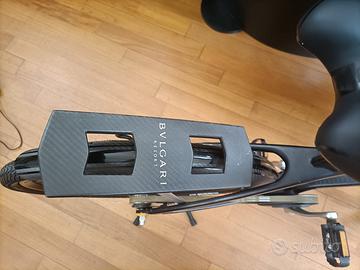 Bicicletta MOMO Design-Bulgari non disponibile in commercio. Monoscocca in carbonio con rinforzi in titanio. Cambio Shimano a 8 rapporti integrato nel mozzo. Trasmissione a cinghia. Mai usata, tenuta solo da esposizione.
