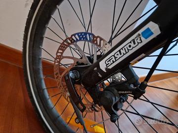 Bicicletta Kawasaki KBAF20 e-folder, bicicletta pieghevole con pedalata assistita tre modalità, più modo "condotta a mano", cerchi 20", doppio freno a disco, cambio Shimano 7 velocità, meno di 200 km percorsi. Vendo causa inutilizzo E. 1200