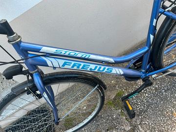 "} Bicicletta city bike Frejus colore blu in buone condizioni. Comoda per città, con portapacchi posteriore e parafanghi. Ruote in buono stato, pronta all’uso. Prezzo trattabile