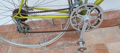 Bicicletta Legnano corsa mod.54 special anni 70 , gruppo cambio Campagnolo a 6 velocità "nuovo valentino" , guarnitura alluminio Legnano , pedali MKS , freni WEINMAN, manubrio corsa 3 TTT , mozzi TOURING su cerchi NISI , completamente originale . Solo ritiro.