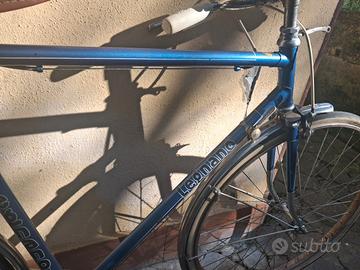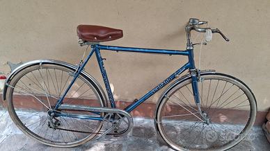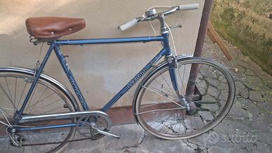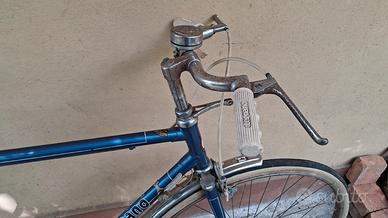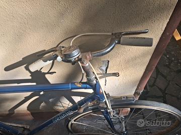 Vendo Legnano anni 60 cambio Campagnolo d'epoca con levette sul tubo obliquo. Telaio e cambio accoppiata storica italiana, - Telaio originale Legnano blu con grafiche e decalcomanie d'epoca - Cambio e deragliatore *Campagnolo* - funziona, nn si legge n tutti i componenti sellino con molle, manubrio, parafanghi cromati, copricatena marchiato Legnano - Presenta la sua patina del tempo con fioritura di ruggine superficiale sul telaio, nessuna ruggine passante. Struttura sana *Prezzo: 350 €* poco trattabili vista la rarità *Zona: zagarolo Roma *Solo ritiro a mano