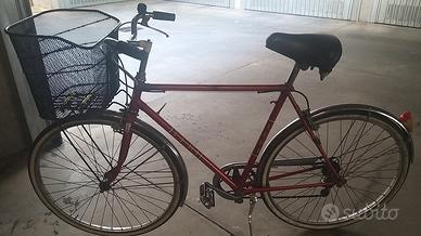 Vendo bici Leri rossa da uomo revisionata, completa di cestino alto 35 cm e portapacchi nuovi.