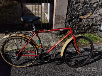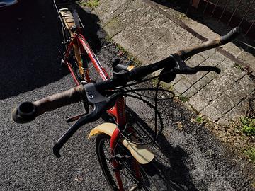 Bicicletta Liberati ruota 26. MTB anni 90, cambi Shimano 21 velocità, tutta originale. Porta pacchi posteriore, parafanghi, cavalletto. Comandi cambio Shimano. Il comando del deragliatore posteriore è funzionante ma un po' duro, da controllare.