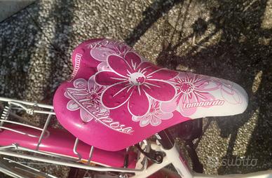 Vendo bicicletta Lombardo Mariposa per bambina 7/10 anni color bianco/fucsia con : cerchioni 20 pollici , monomarcia, cestino anteriore, portapacchi posteriore, cavalletto, luci a batteria, campanello.
