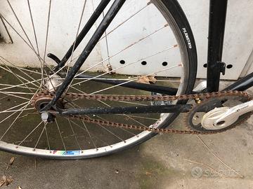 Adatta a persone alte fino a 1,60. Sella imperfetta come da foto. La bicicletta è da sistemare perchè la catena esce quando si pedala, freni nuovissimi e funzionanati, copertoni e camere d’aria in buone condizioni.