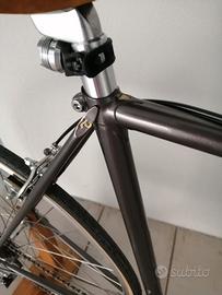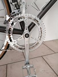 Bicicletta per eroica, Telaio tubi Columbus pantografati poretti, monta cambi e mozzi e comandi cambio campagnolo super record, guarnitura gran sport alleggerita artigianalmente da specialista dell' epoca. Cerchi nuovi in alluminio ride cryna con copertoncino montati e centrati a mano su mozzo super record . Il Telaio è stato sabbiato e verniciato a più riprese da carrozziere (tinta fiat bronzo) . Sella turbo scamosciata nuova , ora monta manubrio e pipa da passeggio ma è facilmente ripristinabile nel suo assetto corsa cambiando solo manubrio e pipa. Molto scorrevole taglia Telaio 54 /55 .
