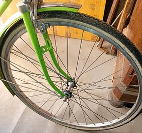 da donna ma all'occorrenza trasformabile in bici da uomo (canna smontabile) parafanghi acciaio inox cerchi e manubrio in alluminio, completa di portapacchi. Cambio 6 velocità .Non spedisco