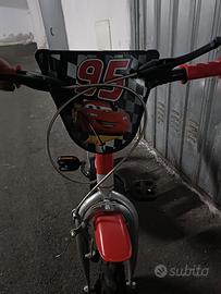 Bicicletta con rotelle Cars usata ma utilizzabile, con delle parti usurate