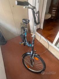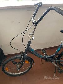 Bicicletta Texo per bambini, verde scuro, pieghevole per un facile trasporto, con freno anteriore normale e quello posteriore a contropedale considerato ideale per bambini in quanto non richiede forza nelle mani ed agisce con una pedalata all'indietro attivando così il freno a tamburo garantendone efficacia e maggior sicurezza, buone condizioni generali, vendo per inutilizzo. Solo consegna a mano