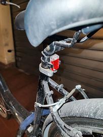 La bici è completa di faro anteriore e luce posteriore perfettamente funzionanti. Freni perfetti. Includo anche un cestino anteriore che può essere agganciato/sganciato con estrema facilità e rapidità.
