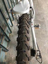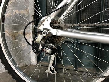 Bicicletta MTB 26”, design by Pininfarina, telaio a passo basso (donna/unisex), ideale per città, ciclabili e sterrati leggeri, ottima come prima bici o per uso quotidiano. Telaio in lega, forcella ammortizzata anteriore, manubrio dritto, freni V‑brake, cambio 3×7 rapporti con tripla anteriore. Copertoni tassellati in ottime condizioni, ruote dritte, bici scorrevole e maneggevole. La bicicletta è in ottimo stato generale: freni e cambio funzionanti, nessun danno al telaio. Adatta a persona adulta o ragazzo/a di statura indicativa 1,55–1,75 m. Prezzo leggermente trattabile. Ritiro a mano in zona. Non spedisco. Per altre foto o informazioni scrivetemi in chat su Subito.