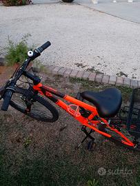 Vendo bicicletta in ottime condizioni come nuova ed è pronta all'uso immediato. Il telaio arancione e nero e privo di danni strutturali . Meccanica perfetta, cambio , freni e forcella ammortizzata sono stati controllati e sono perfettamente efficienti. Accessori inclusi : il cestino e il portatelefono che si potrebbe a montare sul volante. La misura di ruota è 24.