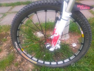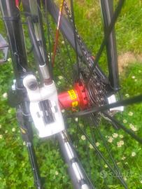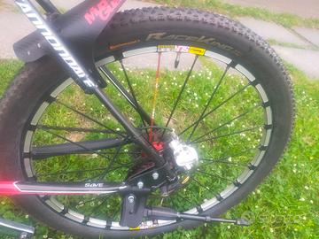 Cannondale carbonio praticamente nuova, taglia M, ruote 26, cerchi e razzi in alluminio. Forcella bloccabile dal manubrio, freni a disco, pneumatici nuovi. Quasi impeccabile nell'estetica, leggerissima e maneggevole, è stata usata perlopiù su asfalto come city bike. Viene fornita, con pompa, borraccia nuova, 2 portaborraccia, cavalletto, computer di bordo, 2 manubri.