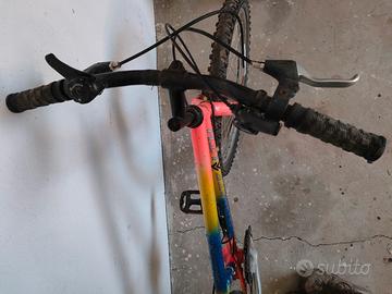 MTB stealth da bambino/a Cambio e freni da regolare (inutilizzata da molti anni) Colori: Blu gialla e rosa ha solo cambio posteriore , 6 corone Lunghezza circa 154 Altezza sella 90 circa