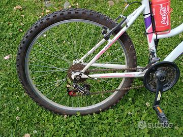 Bicicletta Mountain bike da donna con ruote dim 24x1,95, cambio a 18 rapporti, cavalletto e porta borraccia