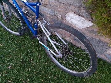 Vendo bicicletta Diablo mtb per inutilizzo. La bici è in buone condizioni, ma va un po' revisionata: presenta alcuni segni di ruggine; il freno a disco anteriore funziona ma deve essere sistemato, stessa cosa per quello posteriore anche se non è a disco; il cambio deve essere regolato (3x7 marce) e l'ammortizzatore posteriore è da cambiare. La bicicletta funziona nonostante ciò ma bisogna metterci mano. Ritiro in zona all'Oasi a Malgesso. Prezzo non trattabile.
