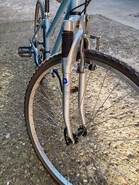 Vendo bicicletta modello Decathlon Cycle con cambio Shimano, ammortizzata, con cavalletto. Tutto in ottime condizioni, solo la gomma del manubrio sx danneggiata.