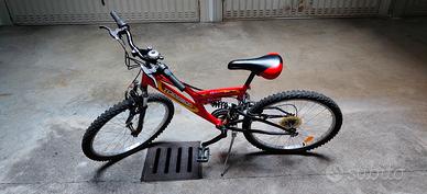 Mountain bike da ragazzo con ruote da 24', dotata di ammortizzatore centrale e forcella ammortizzata, in buone condizioni, unico difetto estetico sulla leva del freno ma freno totalmente funzionante, vendo per inutilizzo.