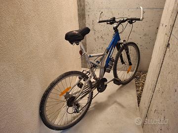 Vendo bicicletta mountain bike Rockrider con doppi ammortizzatori con cambio 24 rapporti e pneumatici 26x1.75. In buono stato e funzionante, servirebbe solo di far revisionare il cambio. Accessori non inclusi (copri-sella, copri-catena, campanello e contachilometri). Non spedisco.