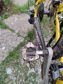 Bicicletta Mountain Bike marca Parkpree. In buone condizioni: Ruote da 26 Tubeless Freni a disco Meccanici Shimano Rapporti Shimano Deore 3x9 Forcella Rock Shock bloccabile Pedali con attacchi per scarpe da MTB Taglia L Per altre foto o info non esitate a contattarmi.