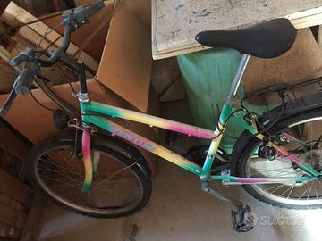 Vendo bicicletta mountain bike per bambini marca Venturi. La mtb di colore verde, giallo e rosso è bassa per un adulto, le ruote sono medie di dimensioni, con fanale posteriore e luce anteriore. è stata usata poco ma è da molto tempo ferma, le ruote sono state comprate nuove ma lasciate sgonfie, ma si gonfiano in poco tempo. Le condizioni della bicicletta sono molto buone. Non penso di spedire quindi preferisco venderla in zona, o ritiro in domicilio oppure posso anche portarla con un furgoncino nelle zone limitrofe a Cesena, a richiesta. Per altre foto e info contattatemi