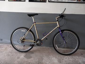 Bicicletta mountain-bike in perfette condizioni, modello Marin, di colore grigio con dettagli viola.