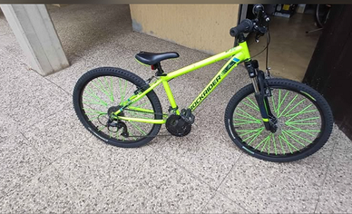 BICICLETTA Rockrider st 500 da 24. E' stato rimosso un adesivo dal telaio (come da foto). La bicicletta sarà venduta priva di copri raggi verde fluo.
