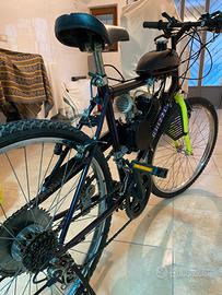Vendo bicicletta con motore cc50 a miscela. Preciso il montaggio del motore e’ stato effettuato artigianalmente. La bicicletta è di marca Grizzyiy bike da 24/26 con cambio e tripla corona avanti