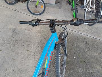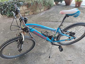 bicicletta da MTB 24, usata ma completamente funzionante, tenuta benissimo. vendo per inutilizzo ha telaio, ruote, fili dei freni, porta borraccia e cavalletto nuovi. le mancano solo le 2 manopole dei manubri non faccio spedizioni no perditempo