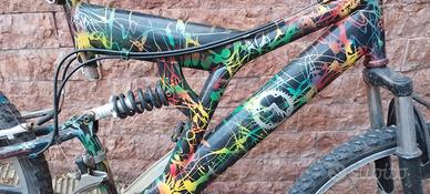 MTB misura 24 grafica personalizzata. doppio ammortizzatore, cambio anteriore e posteriore 18 rapporti.