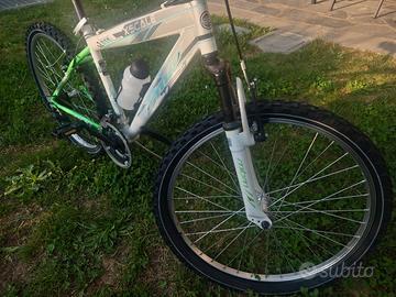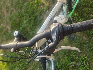Vendo mountain bike (MTB) da 24 pollici marca X-Scale, ideale per ragazzi e ragazze. La bici è stata utilizzata con cura, è in buone condizioni estetiche e meccaniche, pronta per essere usata immediatamente. Dettagli Tecnici: • Cambio: Sistema Shimano • Telaio: Robusto, colorazione bianco/verde acqua. • Ammortizzazione: Forcella anteriore per un miglior comfort su terreni irregolari. • Accessori: Inclusi cavalletto, borraccia e porta-borraccia. • Stato: Usata, ma ben tenuta. Freni e pneumatici in buono stato. Prezzo: € 90,00 (leggermente trattabili) Note: Disponibile per qualsiasi prova o visione. Consegna a mano in zona CavenagodiBrianza. Non effettuo spedizioni