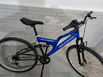 Salve vendo bellissima bicicletta originale decathlon rockrider misura 26 blu metallizzato da uomo La bicicletta è quasi pari al nuovo completa di tutto come mostrano le foto. pari al nuovo nulla da fare vicino con cambio Shimano. no perditempo prezzo intrattabile