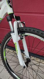 Vendo vici mountain bike da ragazzo marca Atala, misura S, ruote da 26". Condizioni eccellenti come da foto (altre disponibili a richiesta), usata molto poco. La bici ha il telaio e i cerchi in alluminio, forcella ammortizzata, cambio Revo shift 3x7, ruote con sgancio rapido.