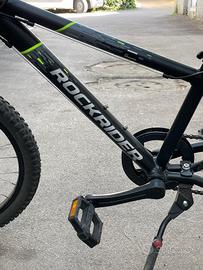 Bicicletta MTB rockrider st 500 nera con cavalletto - taglia 20. Usata pochissimo-condizioni perfette.