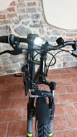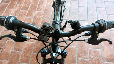 Forcella ammortizzata, freni V-Brake, Rapporti di velocità: 6 su pignone e 3 sulla corona.