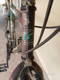 Vendo mountain bike Ganna modello Advance Evasion originale dei primi anni Novanta con la sua caratteristica verniciatura splatter dell'epoca. La bicicletta è un conservato classico di produzione italiana con telaio in acciaio e componentistica Shimano SIS originale. La bici è ferma da tempo in garage quindi viene venduta nello stato in cui si trova nelle foto. Necessita di una revisione meccanica ordinaria come il gonfiaggio o la sostituzione delle camere d'aria e una lubrificazione generale alla catena e ai cambi. È una base ideale per chi cerca una bici robusta da città con uno stile retrò particolare o per appassionati di restauri vintage.