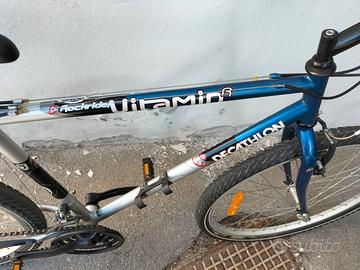 Vendo bicicletta MTB Rockrider Vitamin R ( Gruppo Decathlon B.Twin) anno 2007 doppia corona 3 velocità 7 rapporti forcella ammortizzata NO sospensione posteriore TAGLIA S. Bicicletta da ripristinare con sostituzione camere d'aria e registazione. Consegna a mano vista piaciuta. Cell. 3669729656